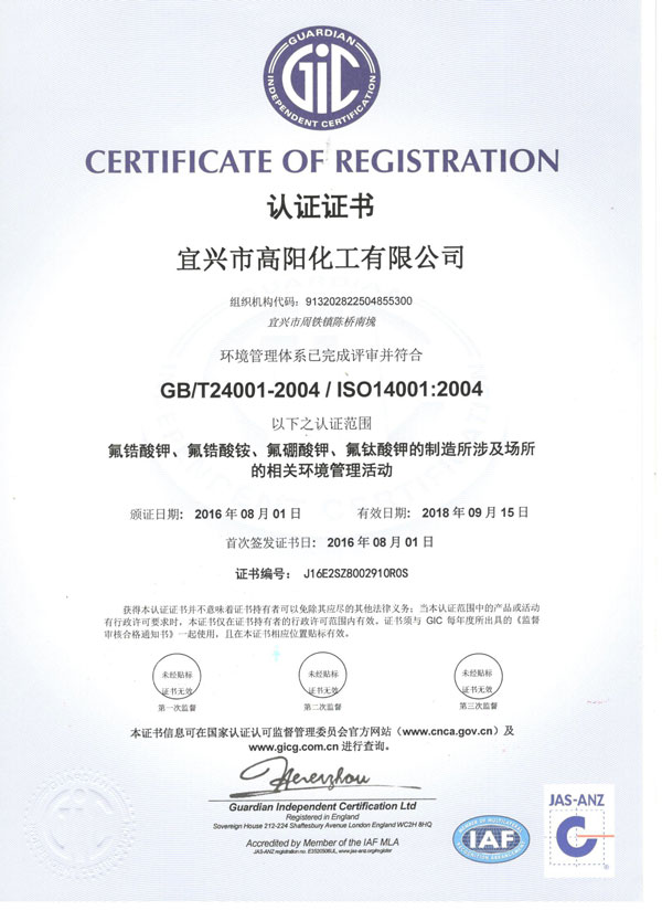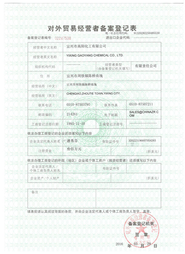 Copyright(C)2022, Yixing Gaoyang Chemical Co., Ltd. All Rights Reserved. Supported by ChinaChemNet ChemNet Toocle Copyright Notice 備案序號:蘇ICP備11031881號